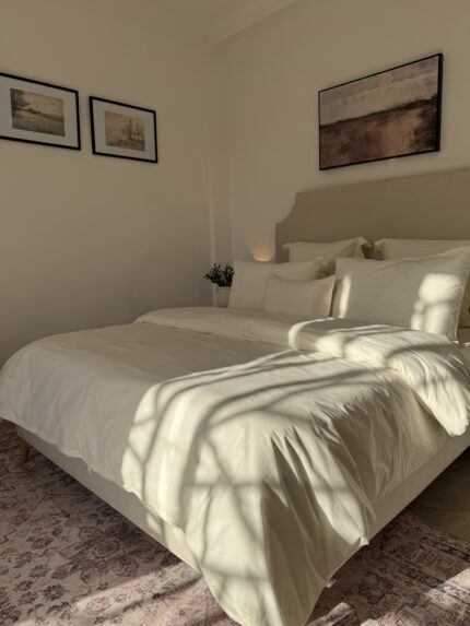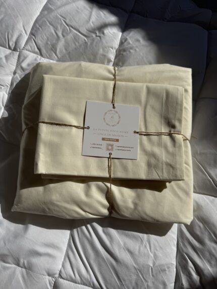 Drap housse + 2 taies d’oreiller en blanc cassé 100% coton